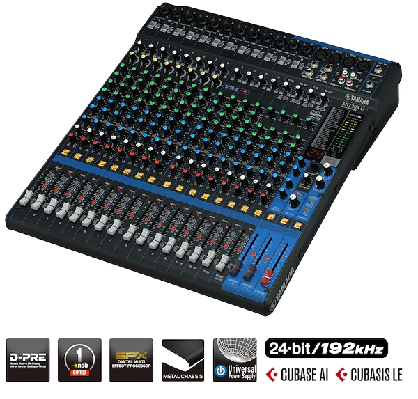 - Tối đa 16 Mic / 20 Line Input (12 mono + 4 stereo)